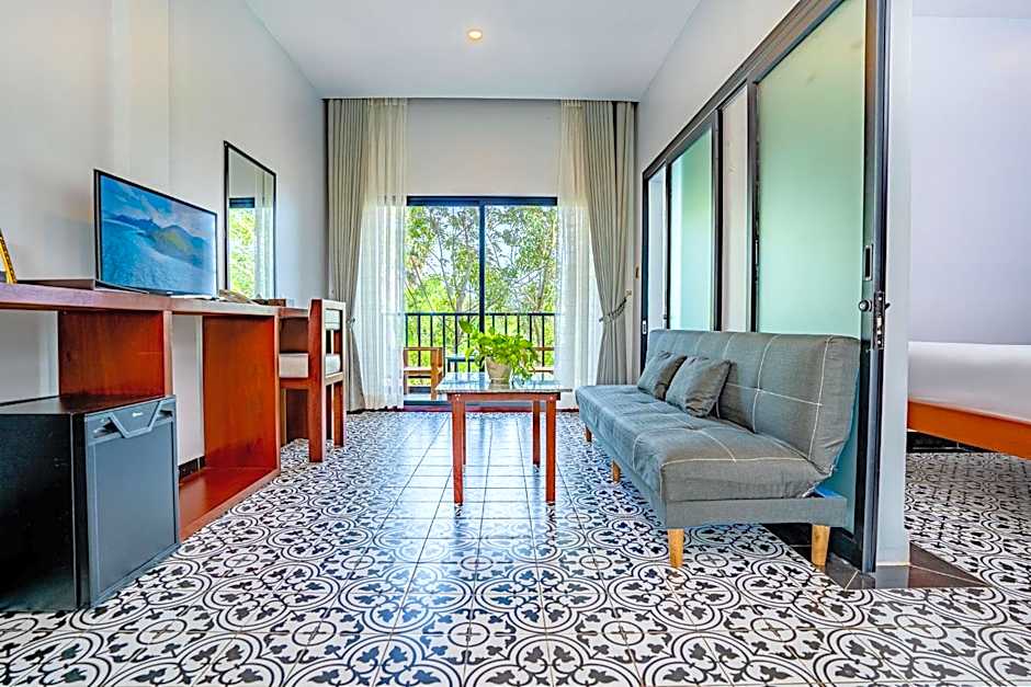The spacious family room offers air conditioning, a mini-bar, a terrace with garden views as well as a private bathroom featuring a walk-in shower. The unit offers 3 beds.
