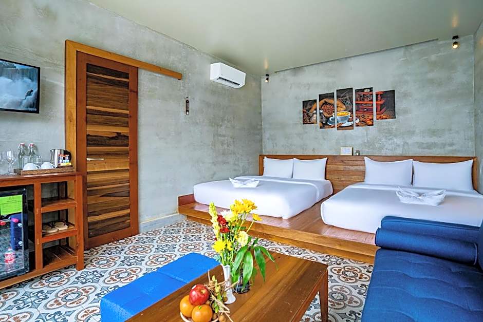 Guests will have a special experience as the twin room offers a pool with a view. The spacious twin room provides air conditioning, a mini-bar, a terrace with garden views as well as a private bathroom featuring a walk-in shower. The unit offers 3 beds.